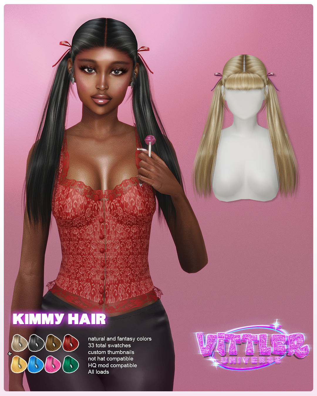 Kimmy Female Hair for Sims 4 33 Swatches Bow in accessories Custom Thumbnails Not Hat …