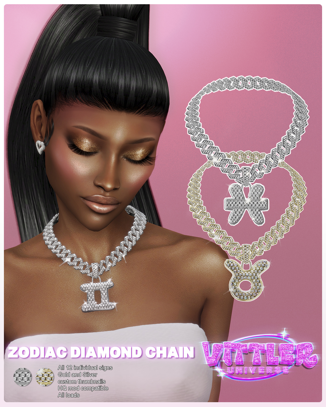 Zodiac Diamond Chain for Sims 4s 4 2 Swatches Custom Thumbnails HQ mod compatible All …