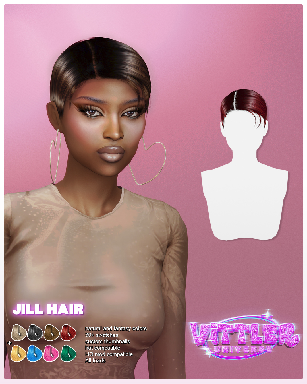 Jill Female Hair for Sims 4 +30 Swatches Custom Thumbnails Hat Compatible HQ mod …