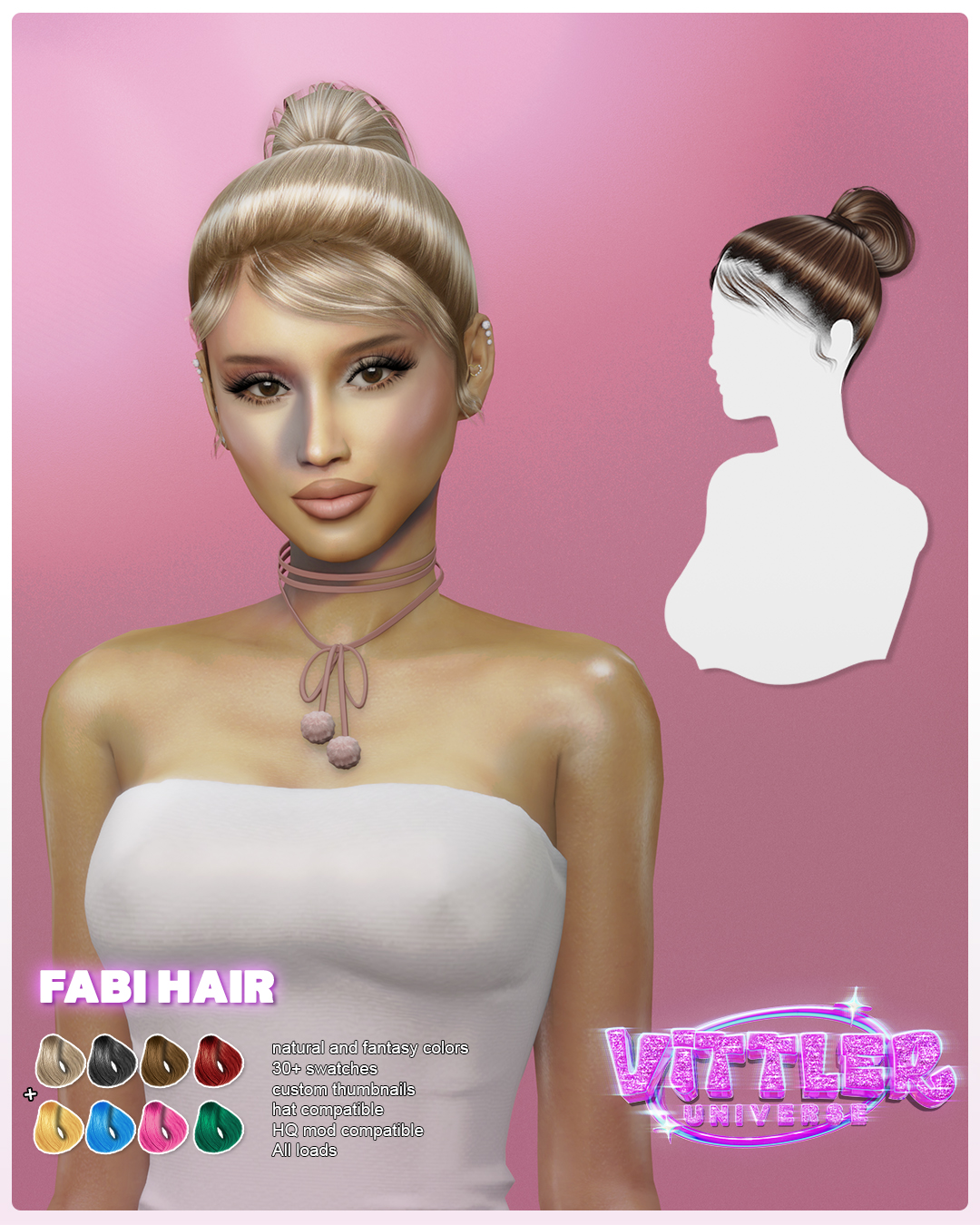 Fabi Female Hair for Sims 4 +30 Swatches Custom Thumbnails Hat Compatible HQ mod …