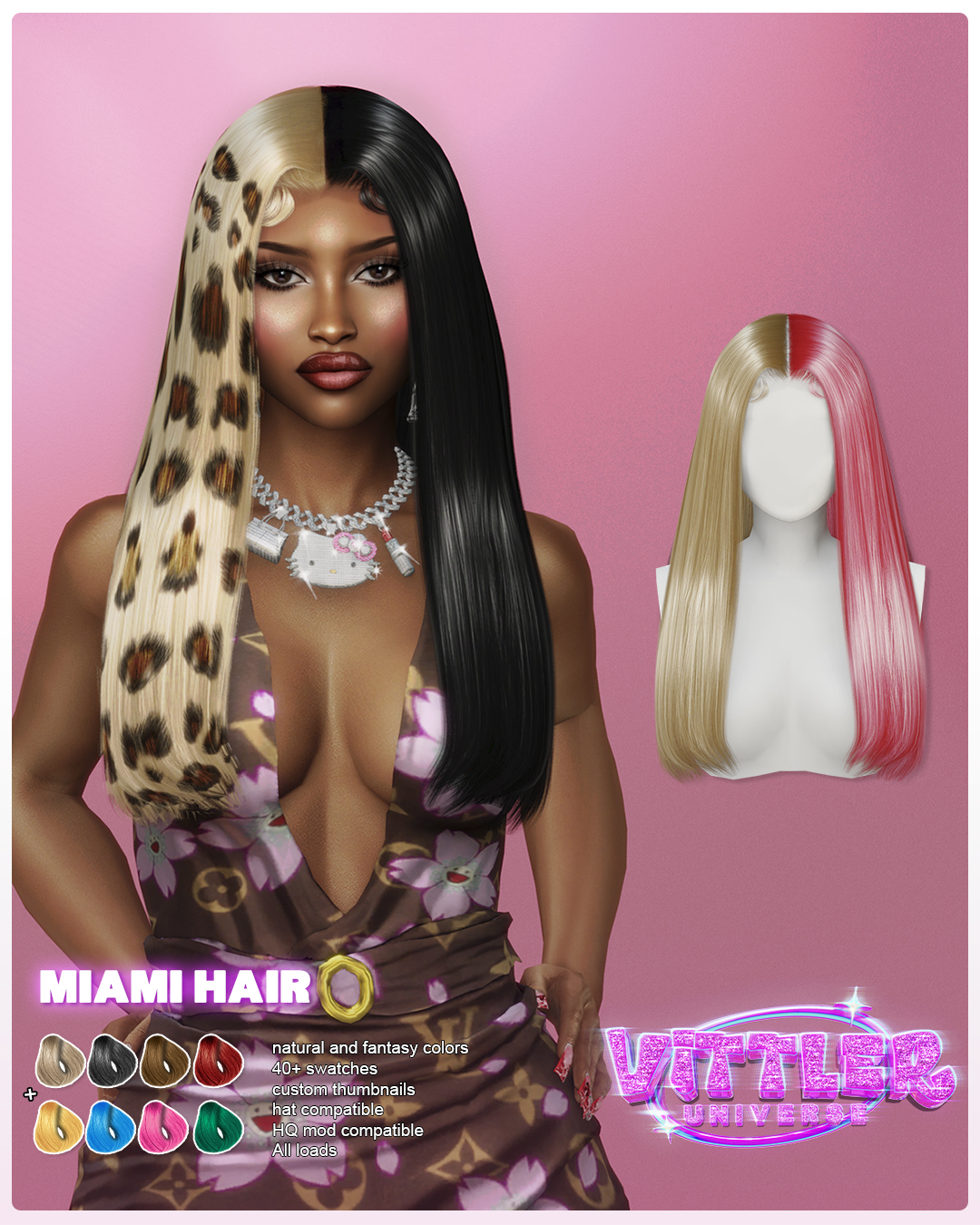 Miami Female Hair for Sims 4 +40 Swatches Custom Thumbnails Hat Compatible HQ mod compatible …