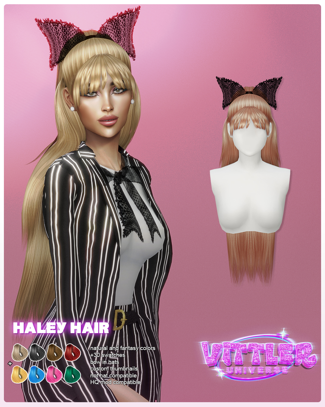 Downloads Early Release: Haley Hair for Sims 4 Haley Female Hair for Sims 4 +30 Swatches Bow in hats Custom Thumbnails Not Hat Compatible HQ mod compatible All Loads DOWNLOAD EARLY RELEASE Download Public Release 11/20